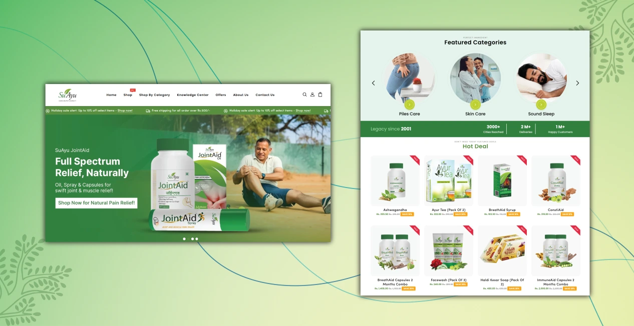 Top-selling eCommerce platform for Ayurvedic products, offering a seamless shopping experience and high-converting design.